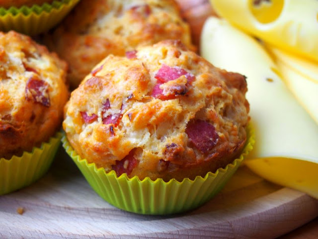 Muffinki kojarzą się ze słodkim deserem. Tymczasem wytrawne, na słono są równie pyszne! Sprawdzają się jako kolacja/śniadanie na ciepło lub przekąska na imprezę. Robi się je dosłownie w kilka chwil, ze składników, które znaleźć możemy w każdej lodówce:) Z poniższego przepisu wyjdzie nam 10-12 sporych babeczek.